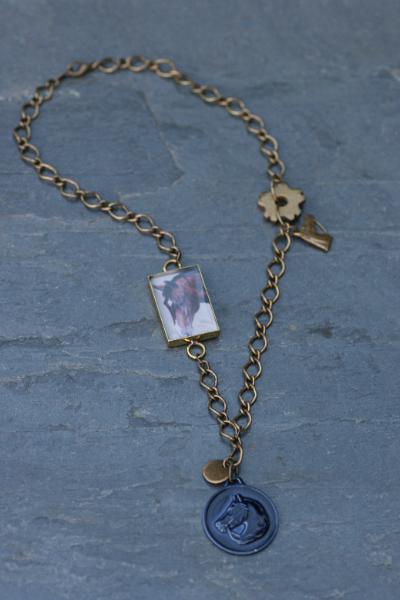 up this unique necklace. The side charm is a beautiful horse head trapped in a resin filled