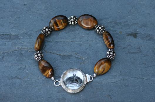 Tiger's Eye and Sterling silver with a vintage intaglio horse head box clasp set in sterling silver. $95